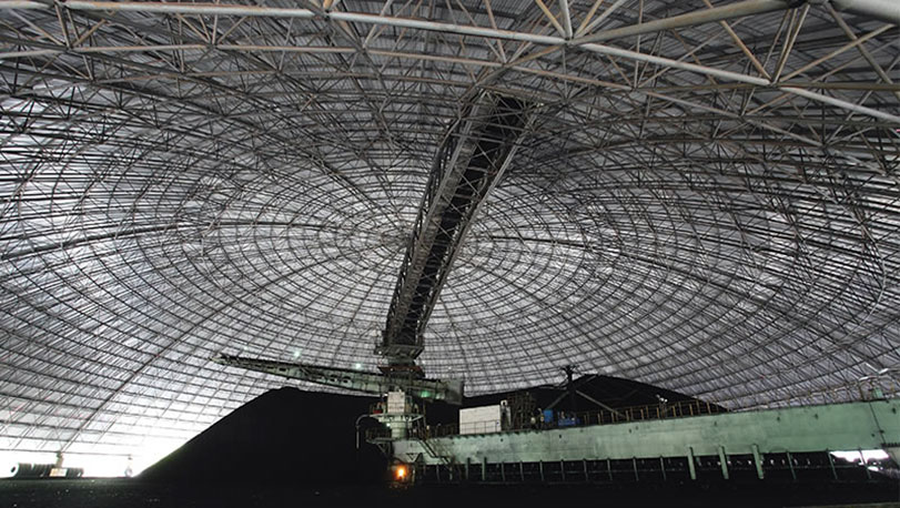 ,建筑為拱型板結構,牌號為TDC51D,鍍鋅量180克/平方米。2011年檢測,涂層厚度達到21.9微米。