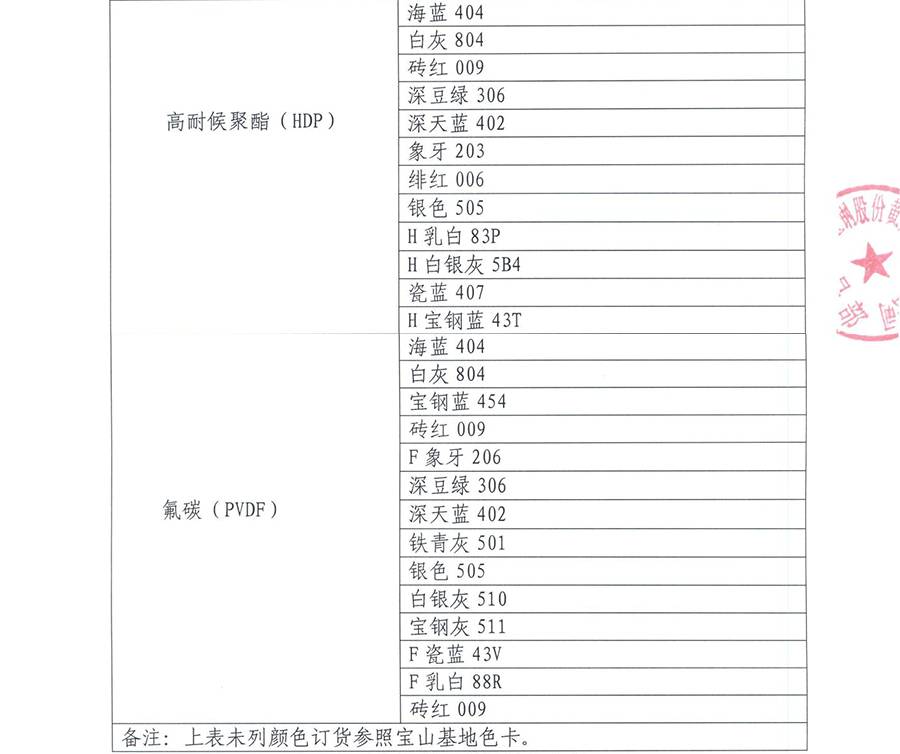 寶鋼黃石彩涂顏色全面切換告知函