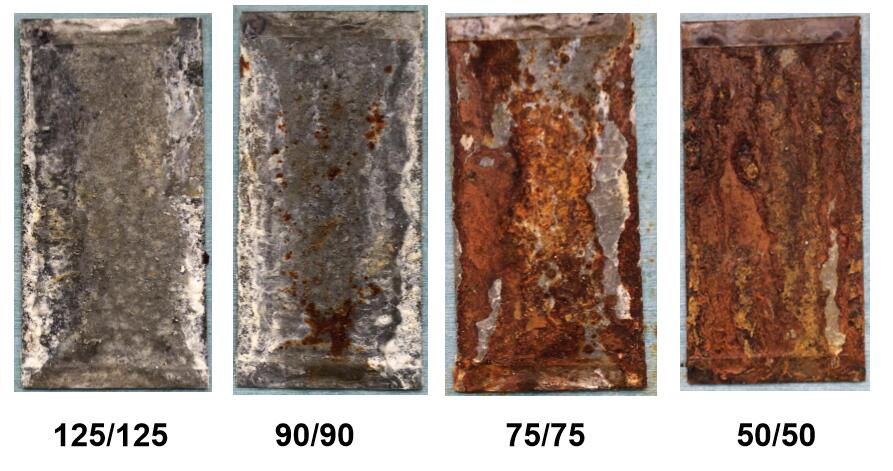 ?封邊鹽霧試驗(2162小時)后,相比50/50g/m2的鍍層產(chǎn)品,厚鍍層產(chǎn)品紅銹面積仍然很低