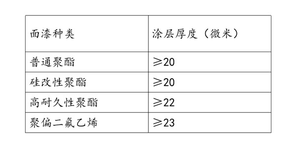 ③配合耐久性高的涂層,寶鋼對該類彩涂鋼板的最低鍍層重量也進(jìn)行了限制,例如氟碳產(chǎn)品熱鍍鋅鍍層重量不小于110g/m2,鍍鋁鋅鍍層量不小于75/75g/m2